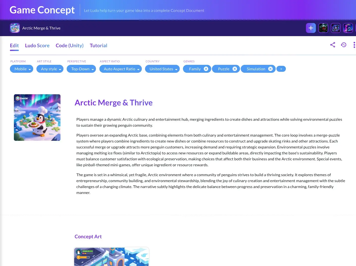 Ready to stop staring at blank pages and start documenting your game the right way? The Game Concept tool is in your Ludo dashboard right now.
