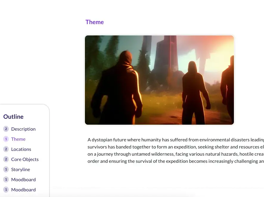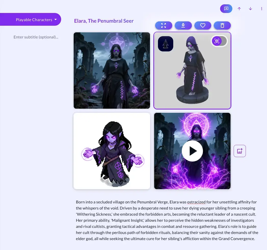 - Images (AI-generated concept art, screenshots, UI mockups, or your own uploads)