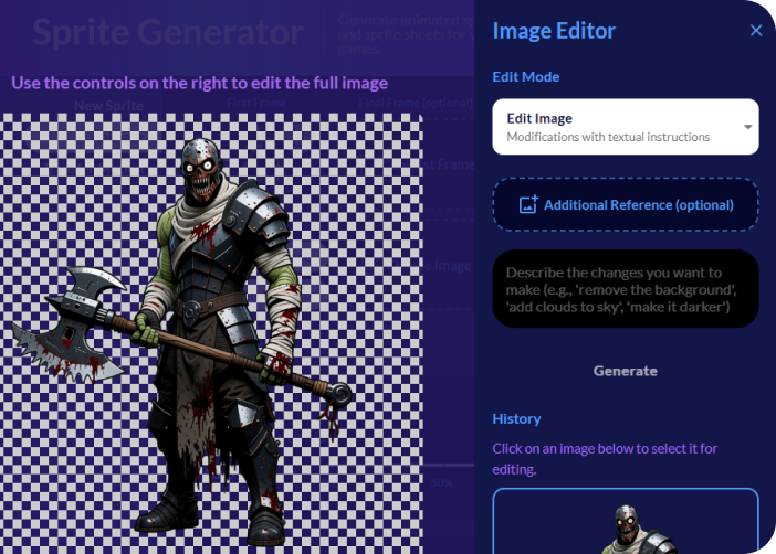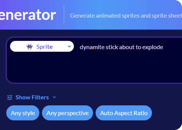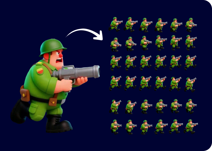 Go from a still image to a moving character by typing simple commands like "run cycle," "idle," or "sword attack." Animate objects to build dynamic worlds. Our AI automates the complex animation process, so you can generate sprite animations for your games without manual keyframing.